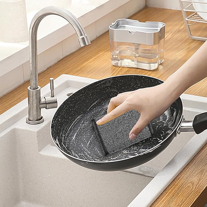 Weqizuerqi offers a set of 6 wire dish scrubbers, made of stainless steel sponge. These non-scratch scouring pads, measuring 13...