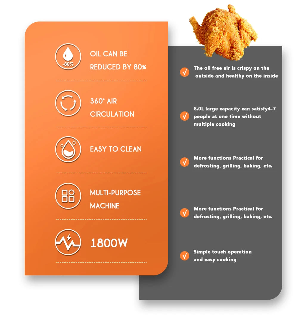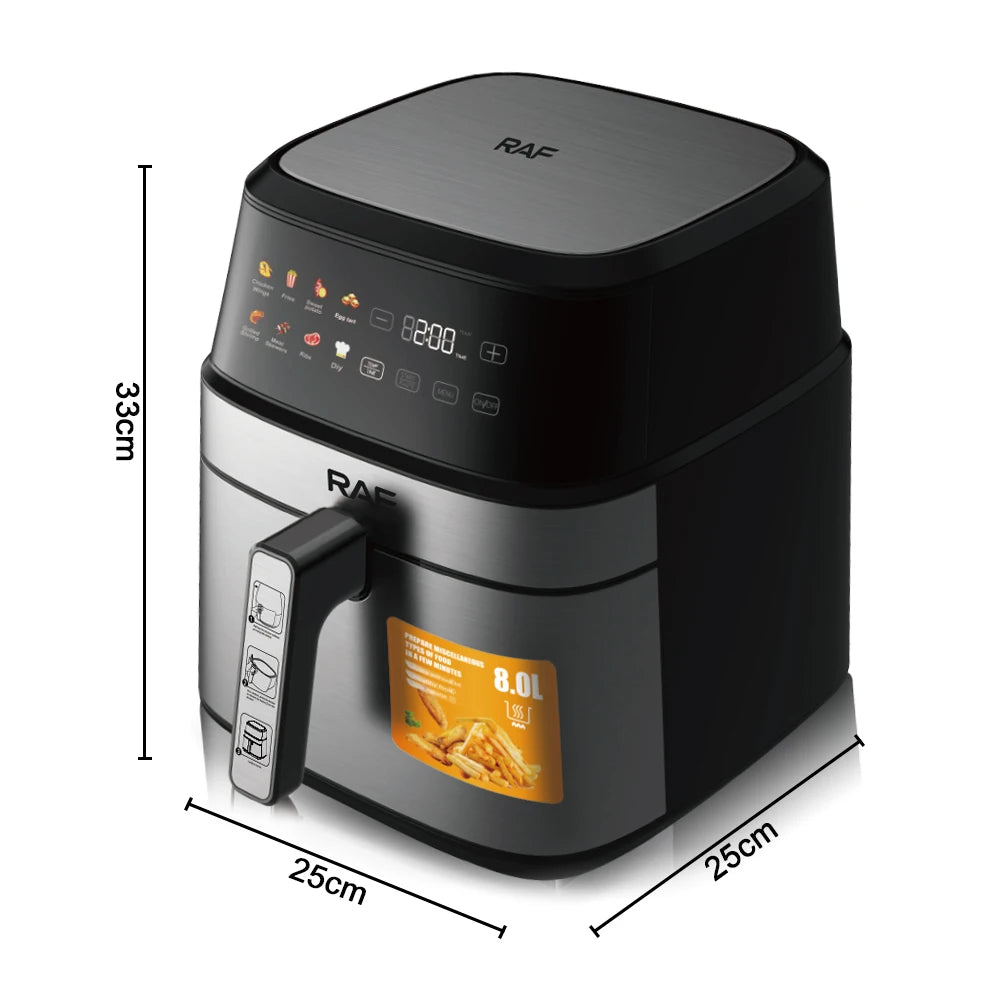Friteuse à air chaud électrique multifonctionnelle 6,5 L, sans huile, écran tactile, numérique intelligent, circulation d'air chaud à 360°