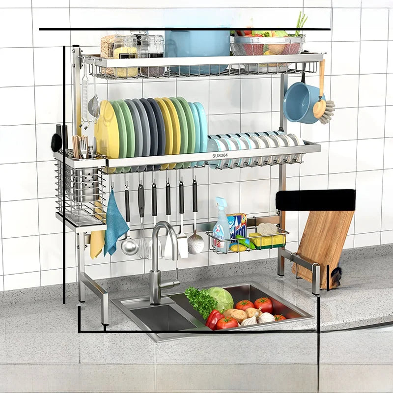 Égouttoir de cuisine en acier inoxydable 304 avec porte-assiettes de rangement multifonction pour évier de cuisine à poser sur le plan de travail