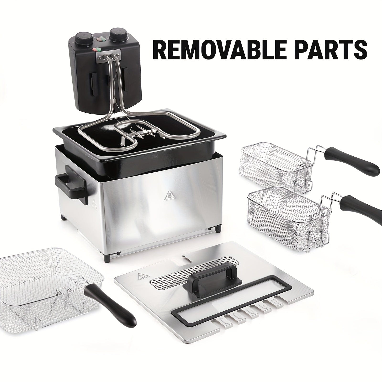 1.32gal Electric Deep Fryer, 1700W Large Fryer with Time & Temperature Control for Home Use, Kitchen Essential, Local Warehouse, Frying Baskets, Lid with View Window, Stainless Steel, Gift for Cristmas & Halloween. Suitable f