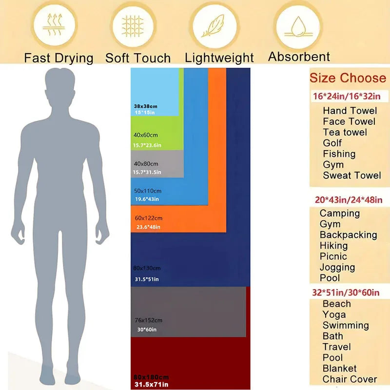 1-pc Microfiber Travel Towel, Quick Dry Towel Super Absorbent Compact Lightweight l for Beach, Gym, Pool, Bath, Yoga, Camping