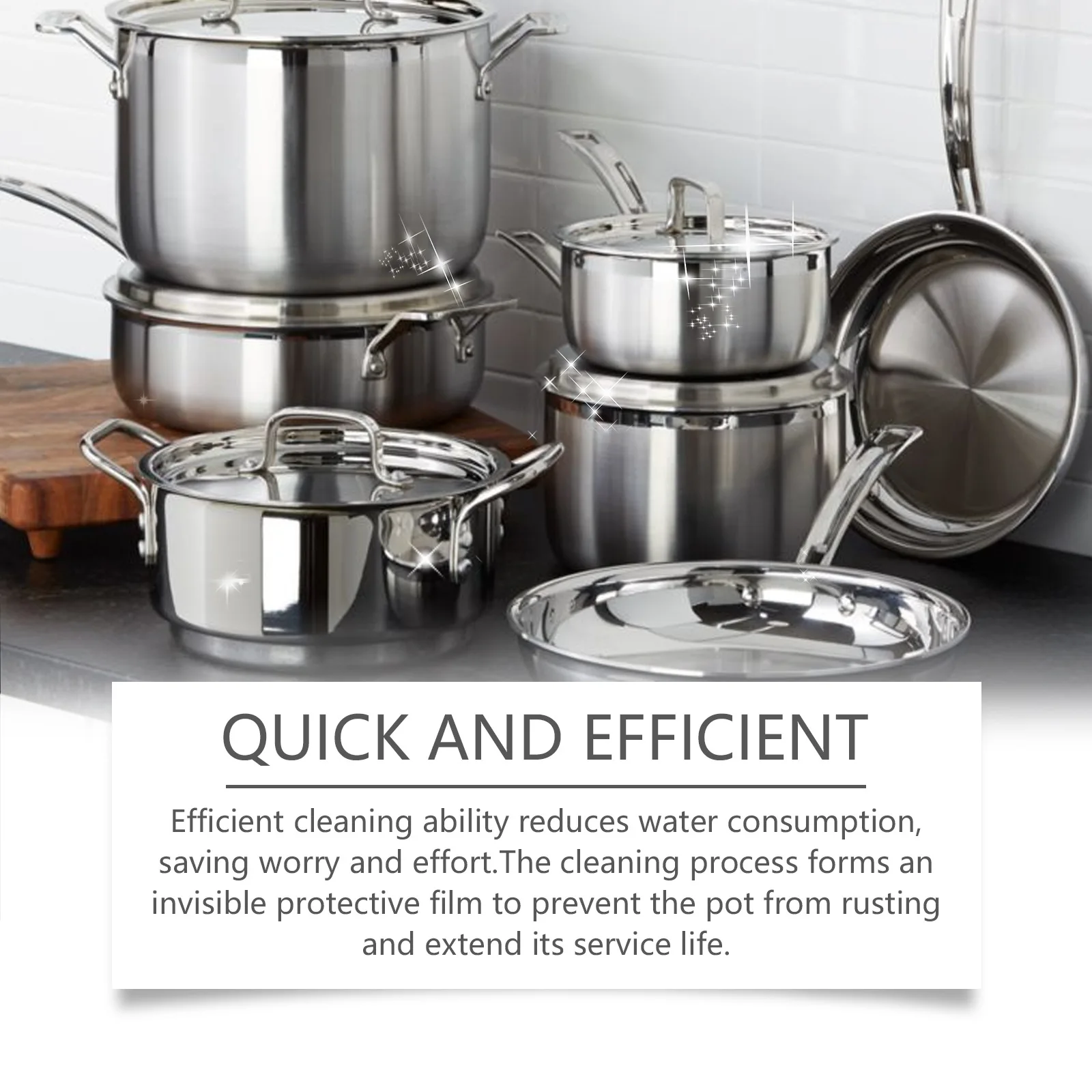 Ce nettoyant pour ustensiles de cuisine de 150 ml est un produit multifonctionnel spécialement conçu pour entretenir et prolonger la durée de vie de vos équipements culinaires. Il agit efficacement comme détachant pour les fonds de casseroles incrustés, éliminant les résidus tenaces sans effort.
