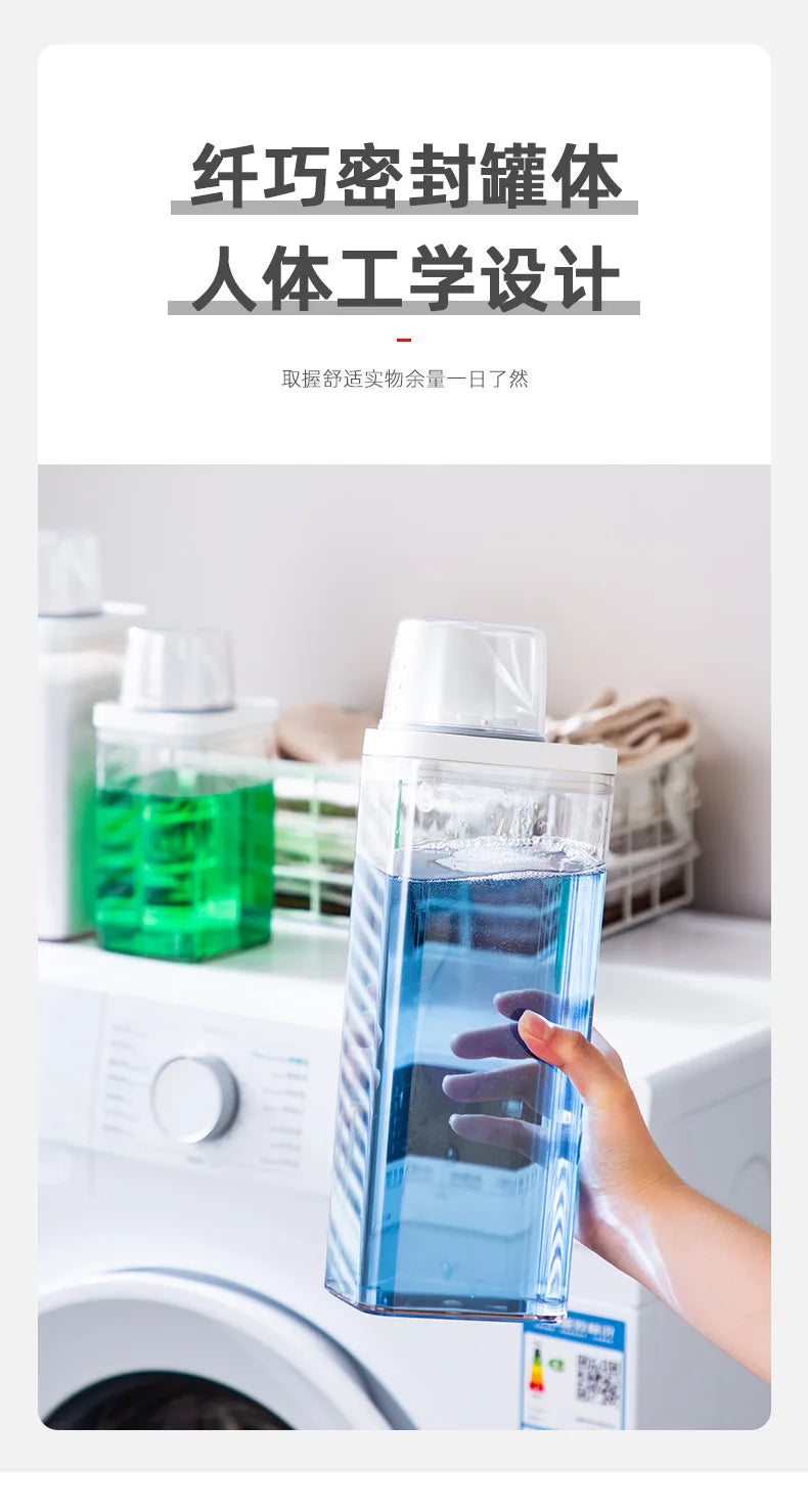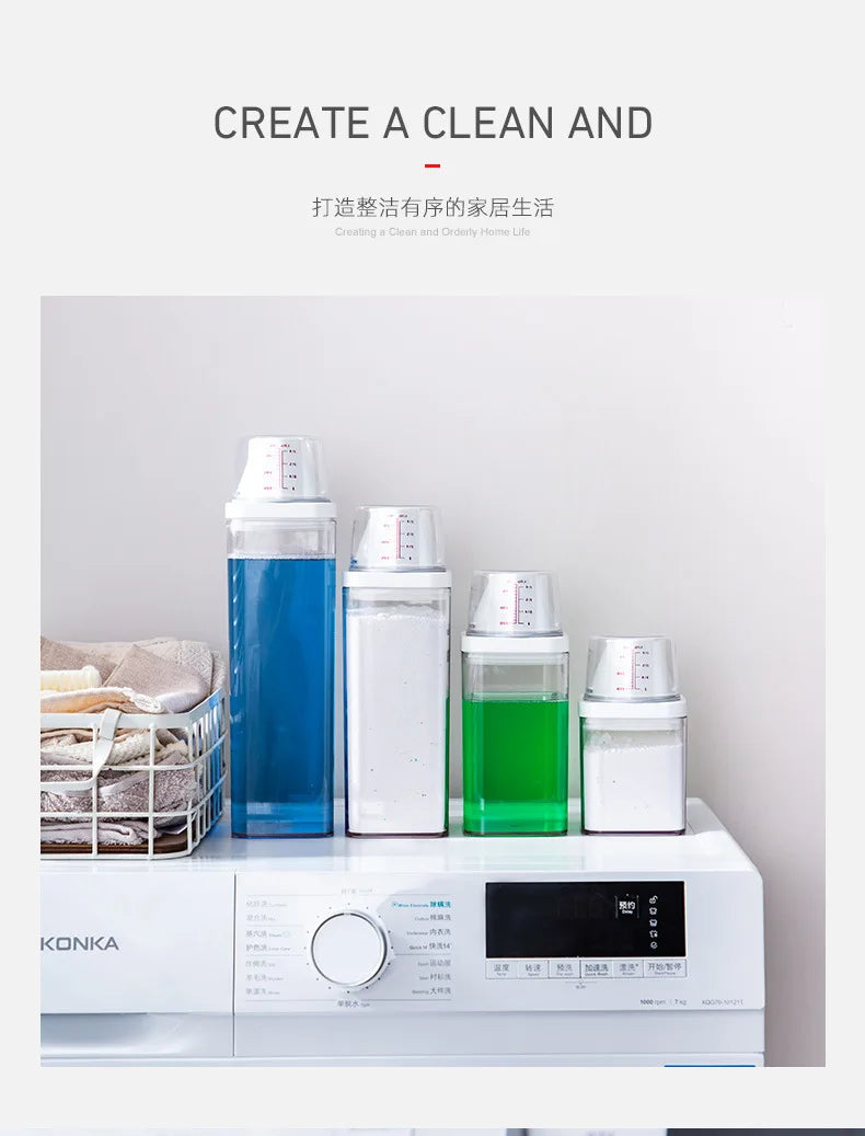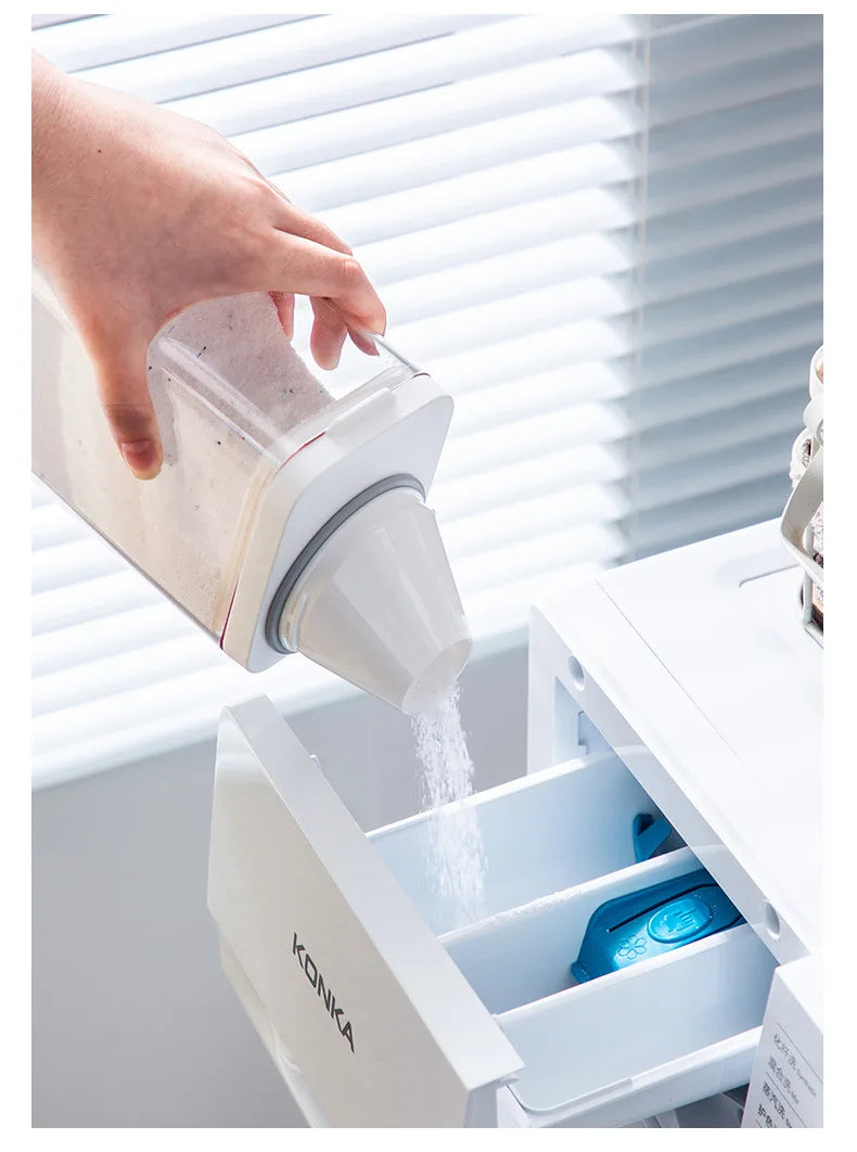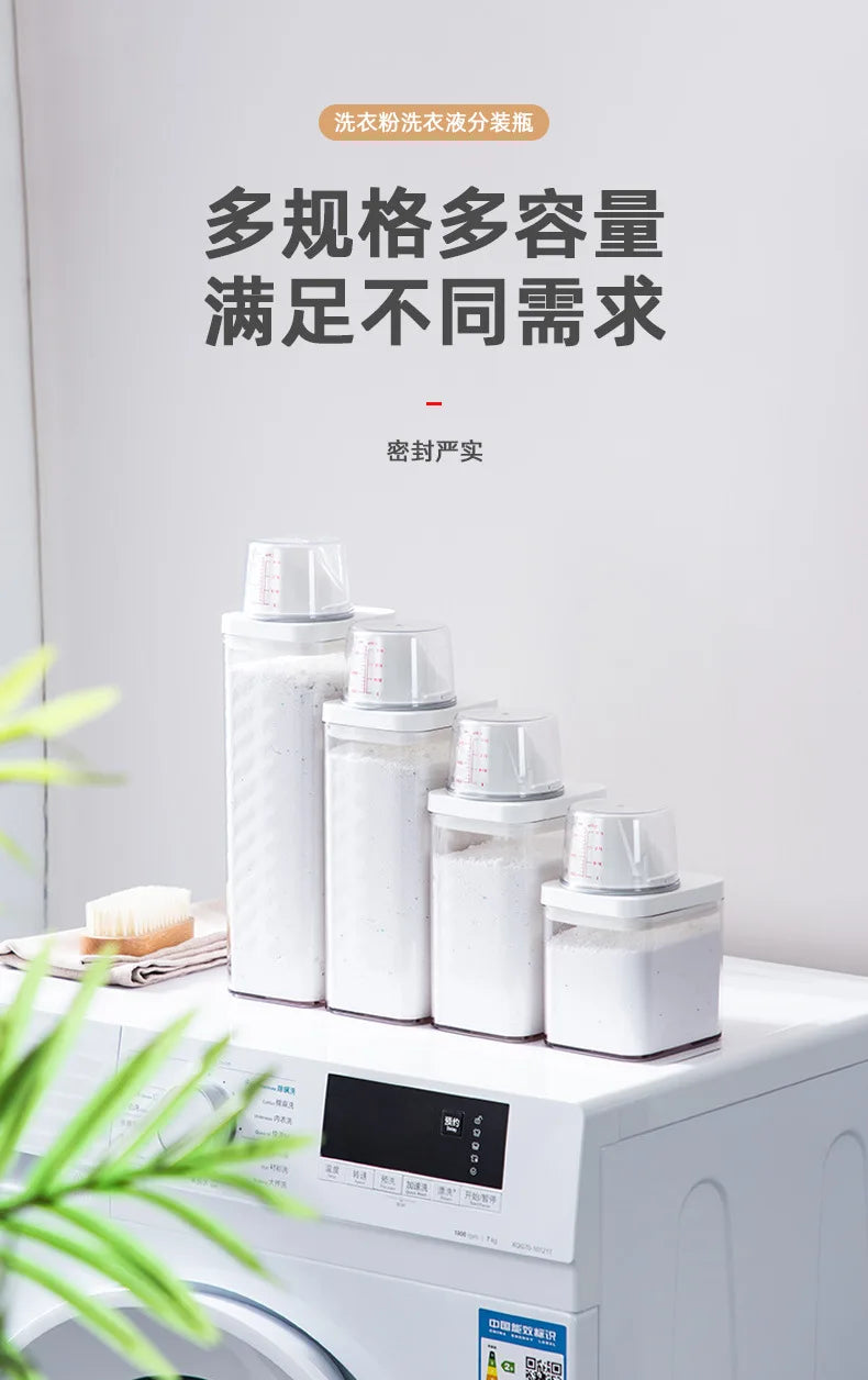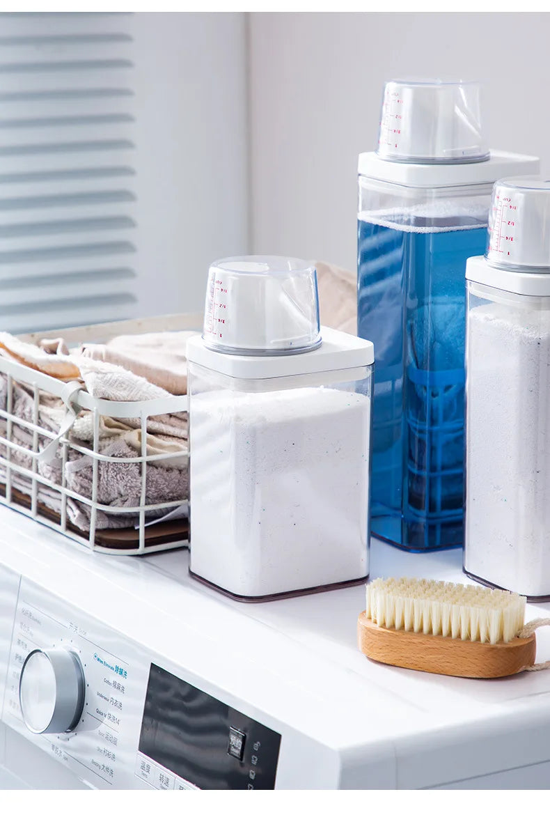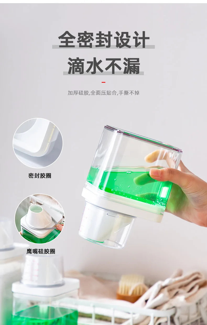 Le distributeur de lessive rechargeable, disponible en capacités de 700, 1100, 1500 et 1900 ml, est conçu pour stocker efficacement votre lessive en poudre, savon ou détergent liquide. Sa conception hermétique avec couvercle assure une conservation optimale, protégeant le contenu de l'humidité et de la contamination.