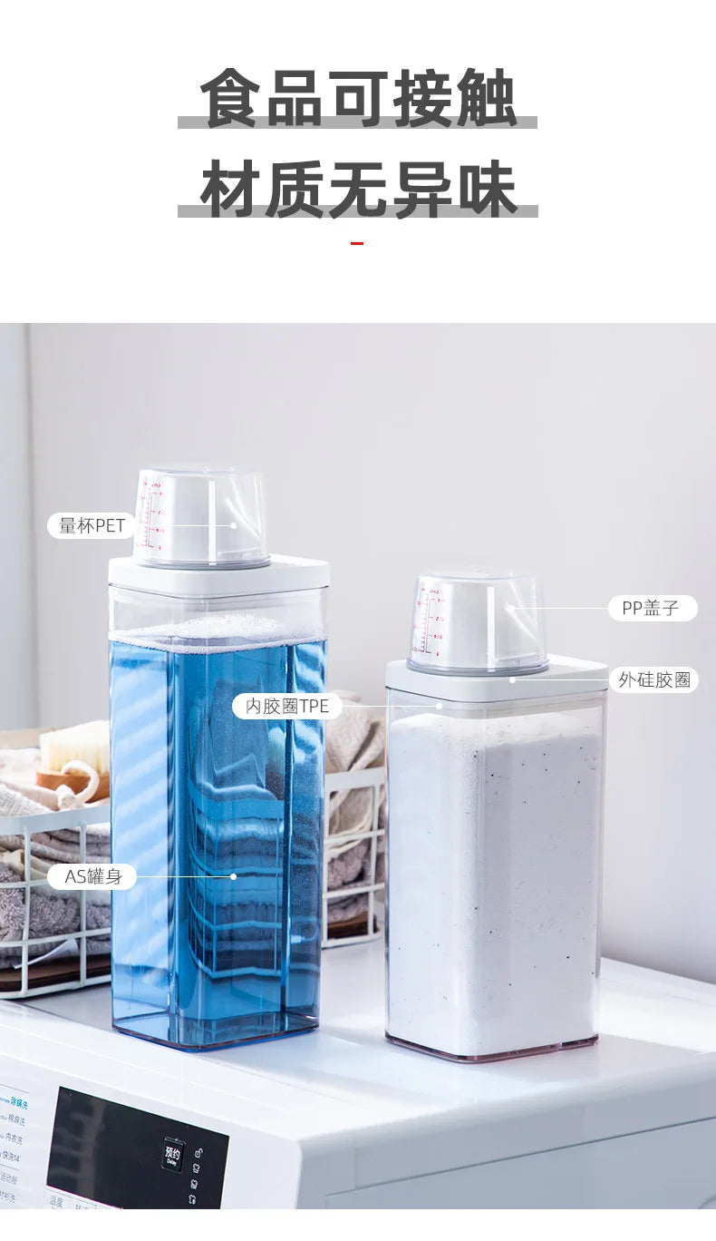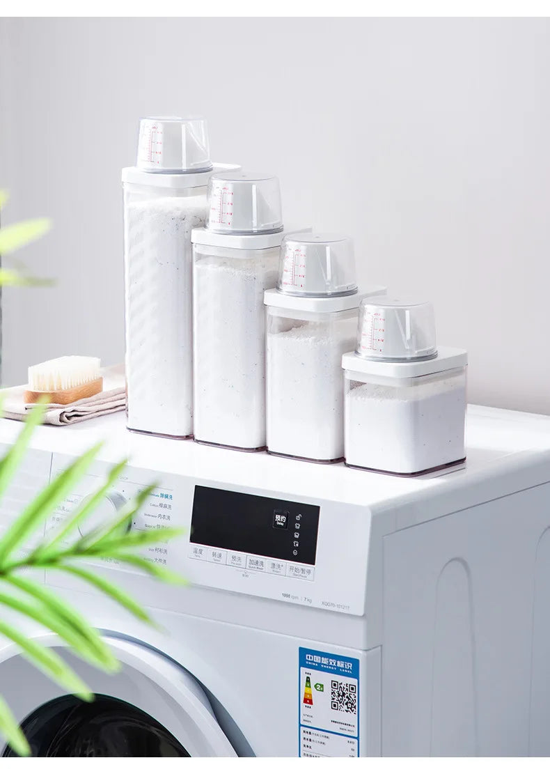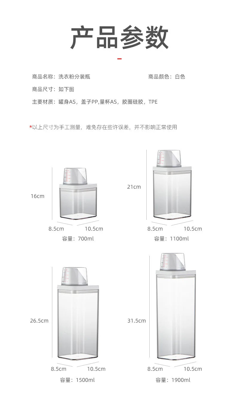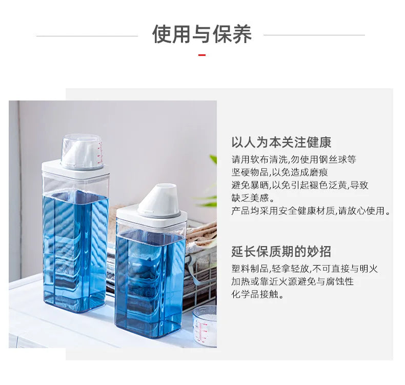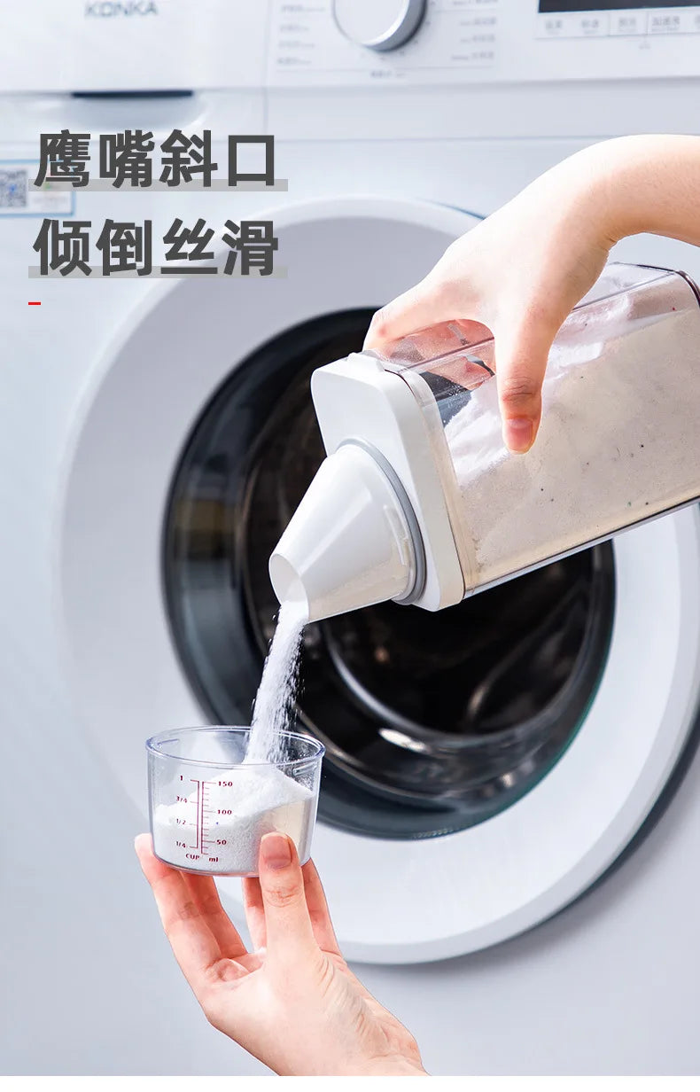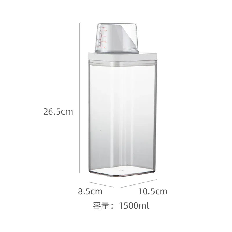 Le distributeur de lessive rechargeable, disponible en capacités de 700, 1100, 1500 et 1900 ml, est conçu pour stocker efficacement votre lessive en poudre, savon ou détergent liquide. Sa conception hermétique avec couvercle assure une conservation optimale, protégeant le contenu de l'humidité et de la contamination.