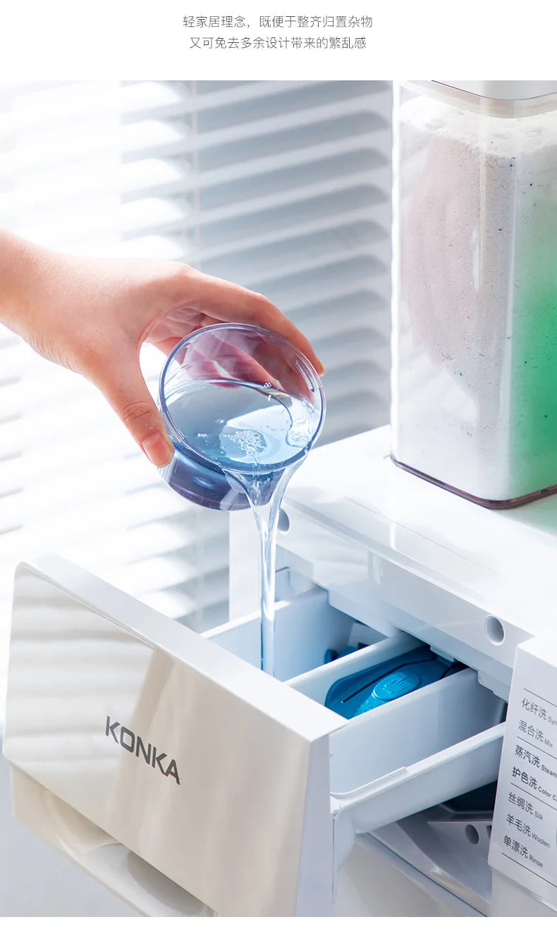 Facile à remplir et à utiliser, il permet de doser précisément la quantité nécessaire pour chaque lessive, réduisant ainsi le gaspillage. Son format modulable s'adapte à vos besoins domestiques, offrant une solution pratique et ordonnée pour le rangement de vos produits de lavage. Idéal pour un usage quotidien, il allie fonctionnalité et durabilité.