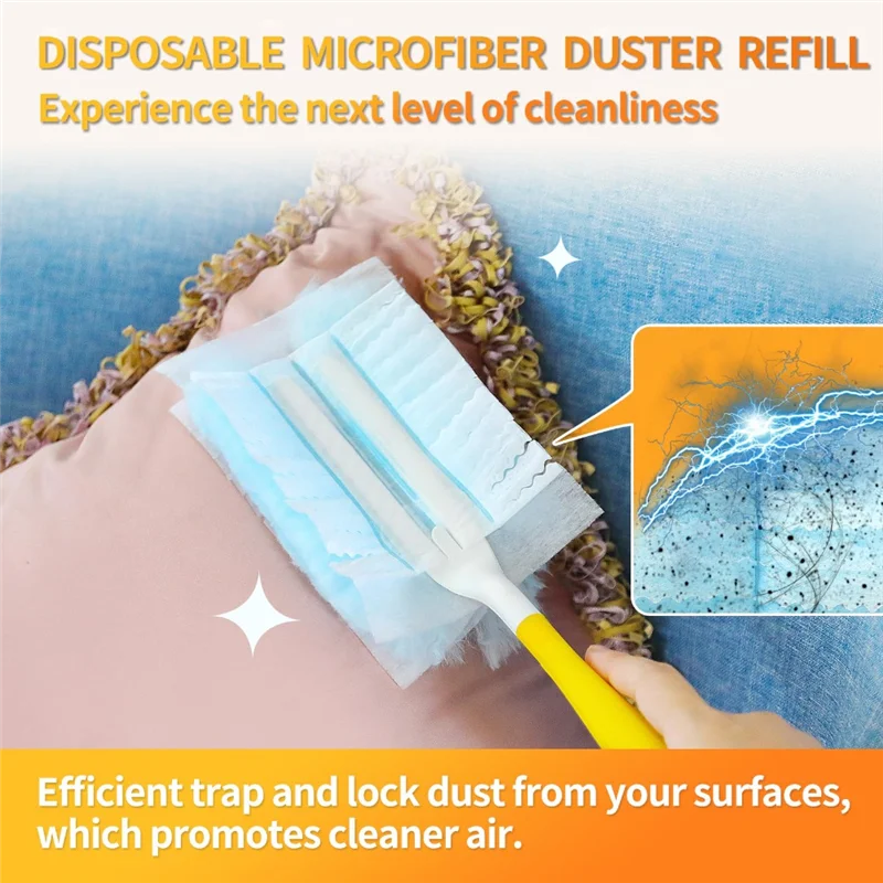 Outils de dépoussiérage économiques : Le paquet contient 60 recharges de plumeau. Après ouverture du sachet, secouez-le légèrement pour obtenir les recharges avant utilisation.