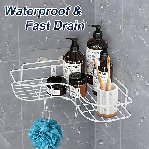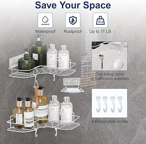 Optimisez l’espace de votre douche grâce à ce pack de 2 étagères sans perçage, spécialement conçues pour s’installer dans les coins, idéal pour les petites salles de bain.