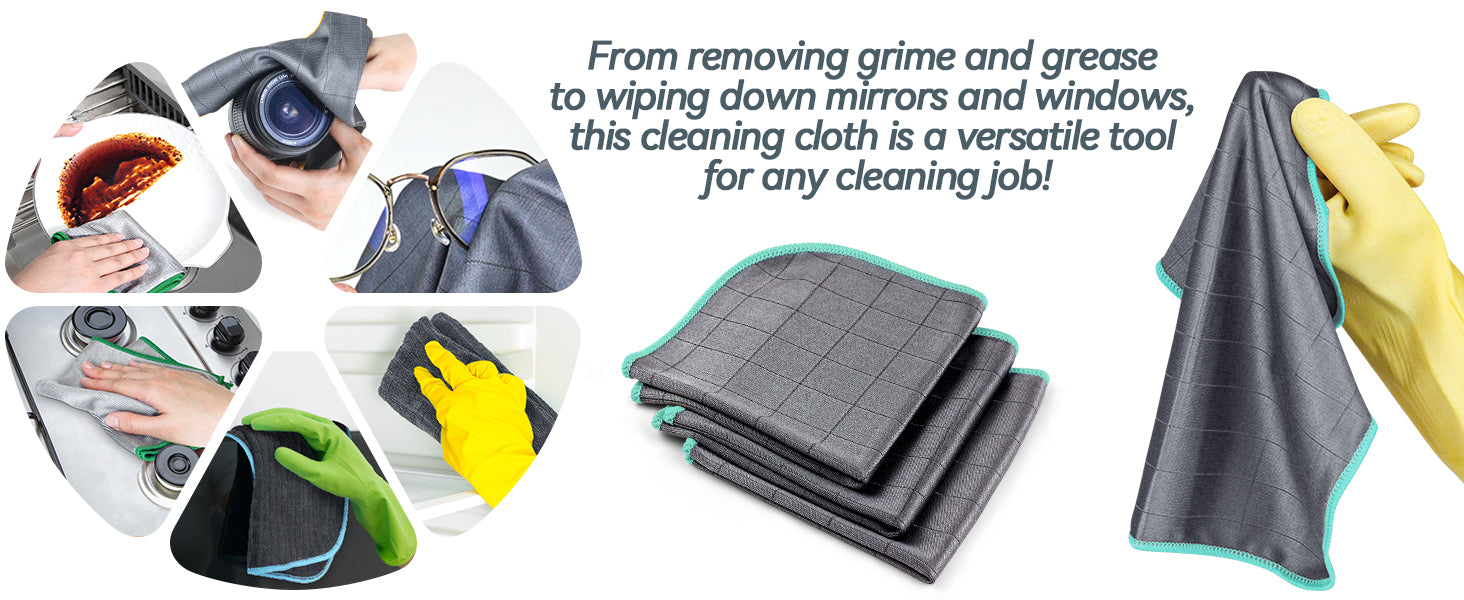 L'élément carbone du chiffon contribue à attirer et à piéger la saleté et la crasse, ce qui facilite le nettoyage des surfaces. Cela signifie que vous pouvez obtenir un nettoyage plus profond avec moins d'efforts.