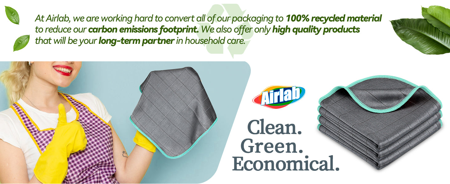 Airlab , chiffon Magique en microfibre de carbone 400GSM, serviette absorbante et sans traces pour polissage, lingette multi-usage pour verre, vitres, vaisselle, lunettes, cuisine, ménage et voiture. Torchon de nettoyage réutilisable et lavable, idéal pour un entretien efficace et durable.