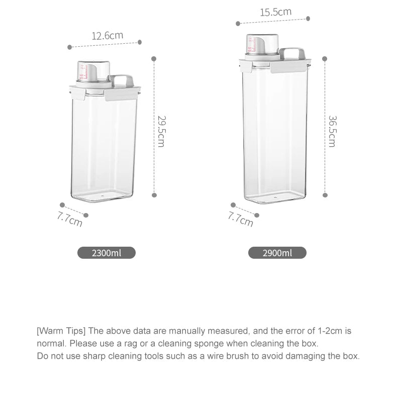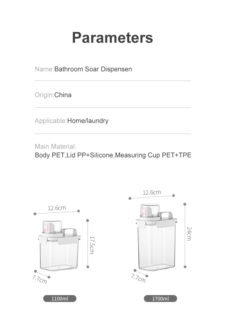 Multi-usages : Convient pour stocker divers liquides et poudres, tels que lessive, lessive en poudre, gel douche, savon pour les mains, nettoyant cuisine, etc.