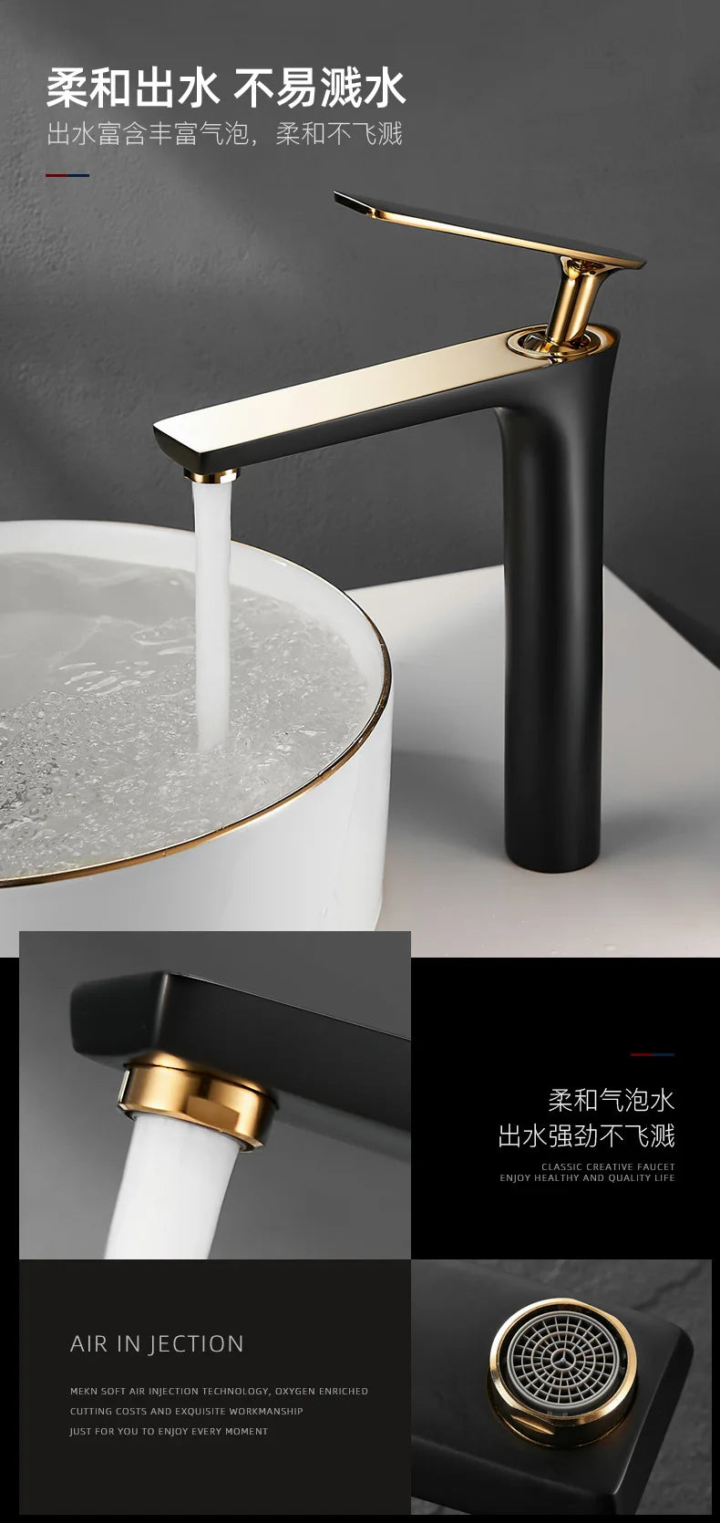 All Copper Black Gold Basin Faucet Sink Faucet Hot and Cold Faucet White Heightened Bathroom Faucet Bathroom Faucet