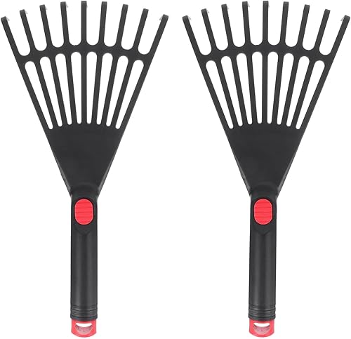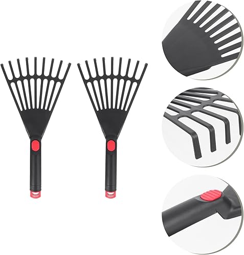 Lot de 2 râteaux à main Angoily en plastique, dotés de poignées ergonomiques – outils compacts idéaux pour le ramassage des feuilles, le travail du sol, l’aération et l’application de paillage.