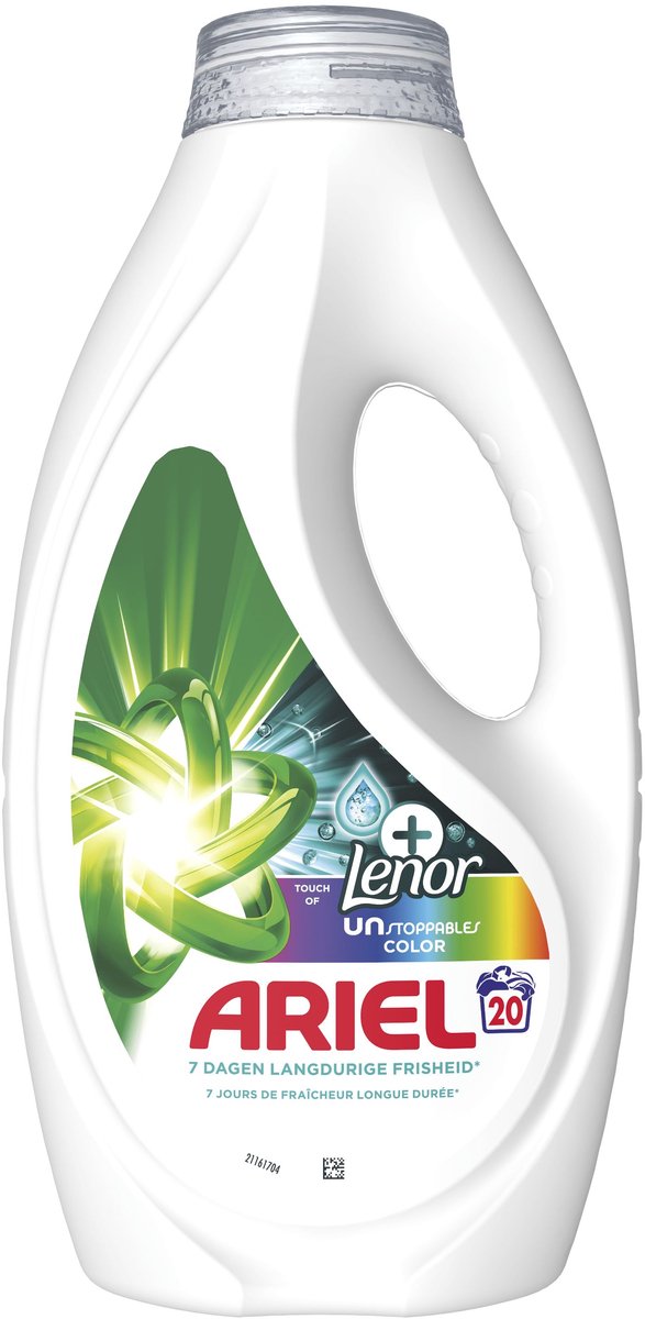 La lessive liquide Ariel, enrichie avec Touch of Lenor Unstoppables Color, garantit un nettoyage parfait et une fraîcheur qui perdure jusqu’à 7 jours dans votre armoire, tout en assurant des performances efficaces même à basse température.