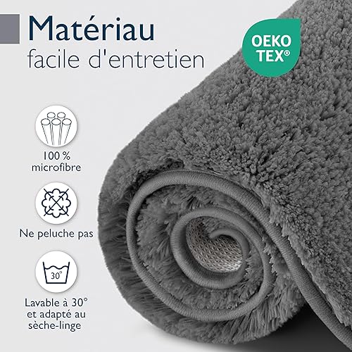 Adapté non seulement pour la salle de bain, mais aussi pour diverses pièces de la maison, ce tapis se décline en plusieurs formes et couleurs pour s’harmoniser avec votre intérieur. Certifié STANDARD 100 by OEKO-TEX, il garantit une fabrication respectueuse des normes environnementales et sanitaires.