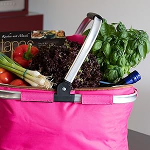 Fonctionnel et généreusement dimensionné, ce panier à provisions dispose d’une poignée pliable en aluminium pour un transport aisé. Il offre un grand volume de rangement pour vos achats et se replie rapidement pour un rangement optimisé à domicile ou en voiture.