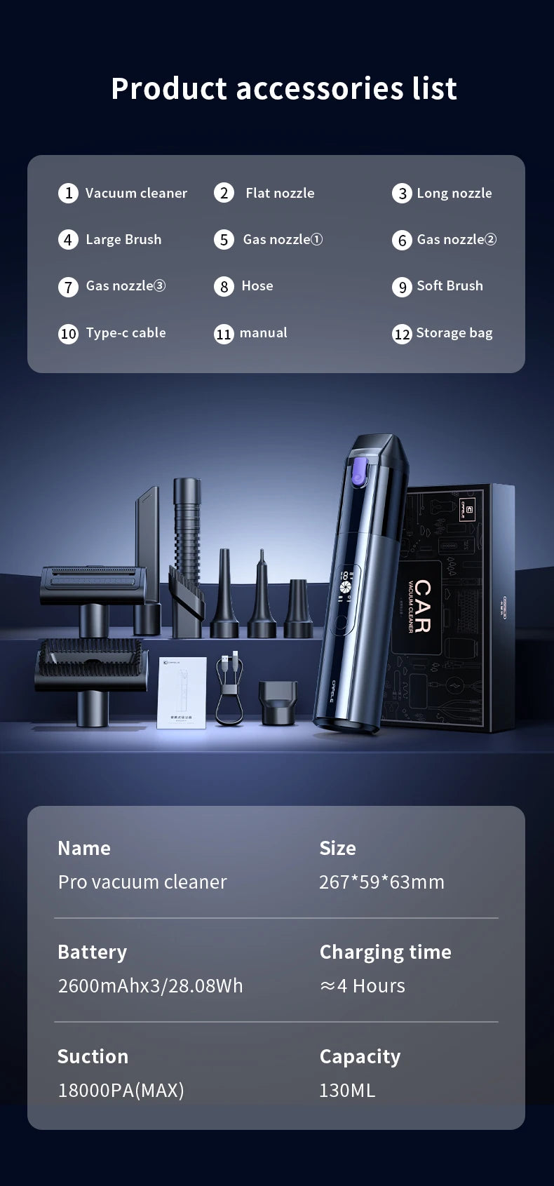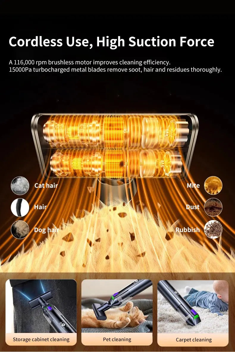 Cafele 15000Pa Wireless Vacuum Cleaner Portable Air Pump Vacuum Sealer Powerful Air Blower 4-in-1 For Car Home Office PC Clean