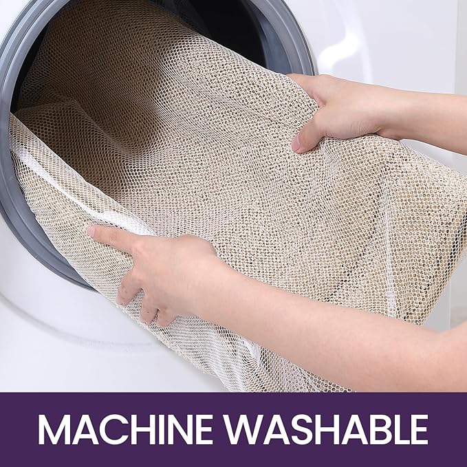 Facile à entretenir, il peut être lavé en machine grâce à son sac en filet ou rincé directement, puis séché à l’air libre ou en sèche-linge. Son emballage en rouleau minimise les plis, garantissant une présentation soignée.