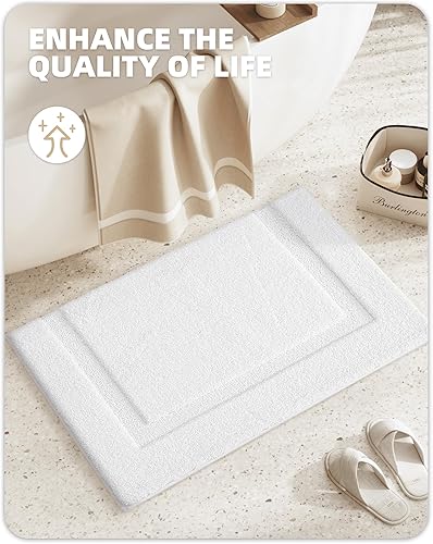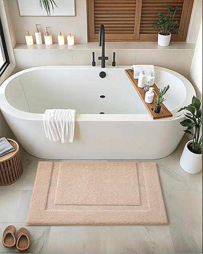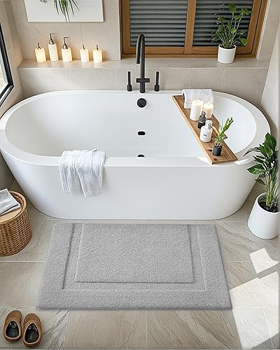 Ce tapis de bain antidérapant offre une surface en tissu pelucheux, douce et très absorbante, idéale pour retenir l'eau après la douche tout en soulageant la pression des pieds.