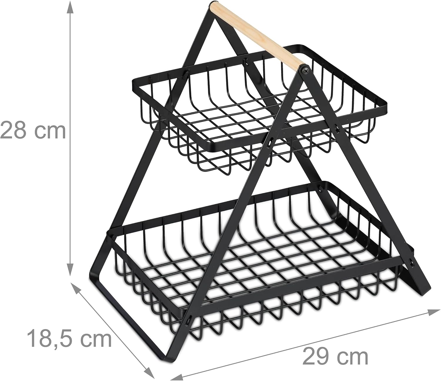 Corbeille à fruits et légumes Relaxdays à deux niveaux, idéale pour la cuisine, au design contemporain en métal noir.