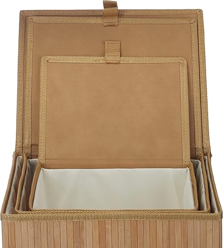 Le set de 3 corbeilles de rangement Relaxdays 10024308_126 comprend des paniers avec couvercle, conçus pour organiser étagèrement vos espaces tout en apportant une touche décorative naturelle.