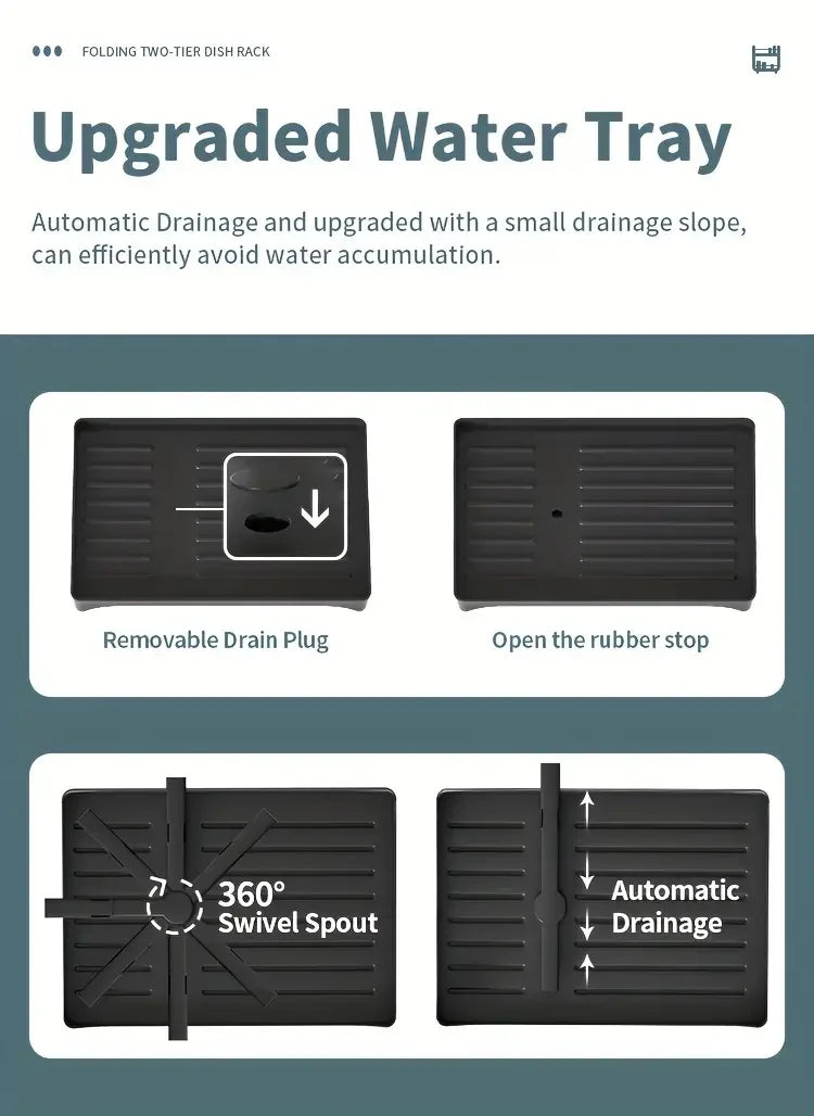 Dish Drying Rack, 2 Tier Large Dish Drying Rack for Kitchen Counter with Drainboard Stainless Steel Dish Drainer for Dish&Cup
