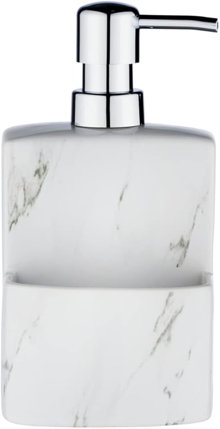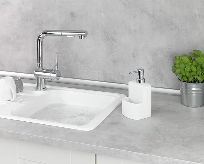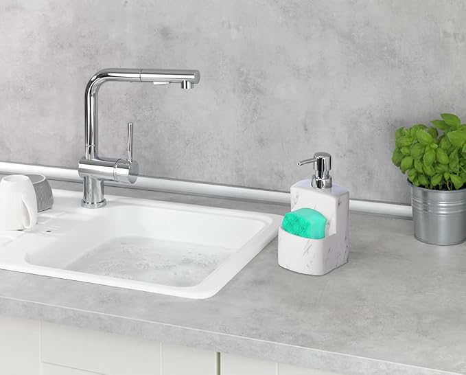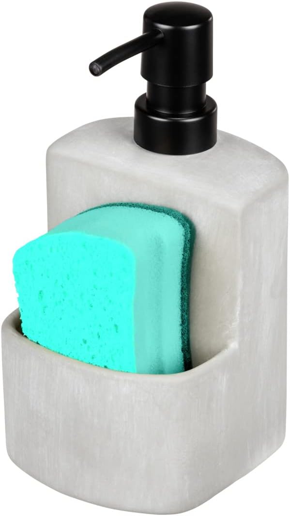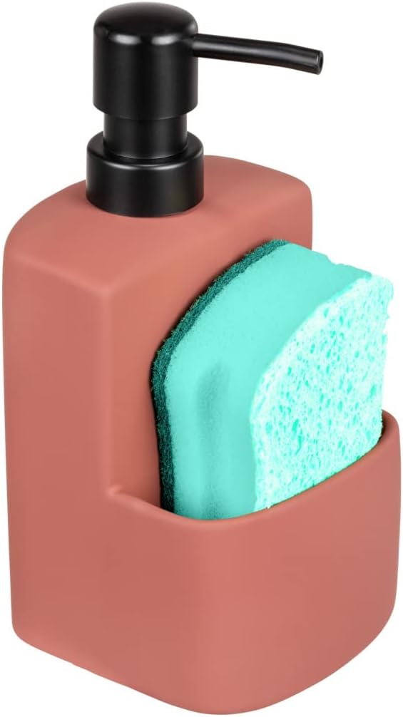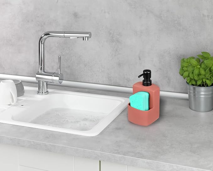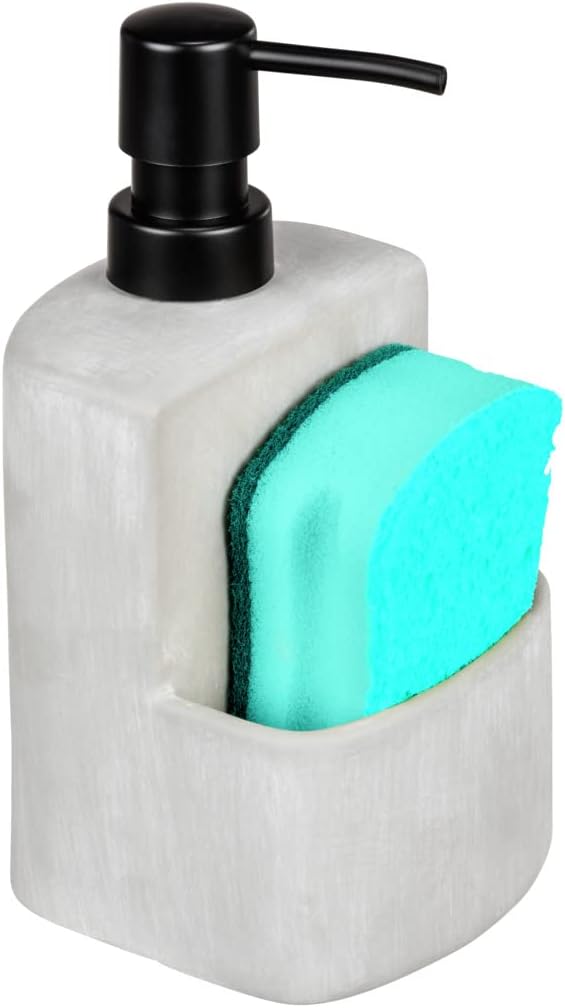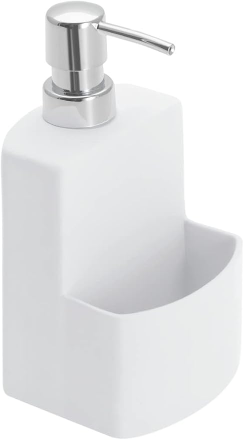 Pratique, son rangement intégré accueille non seulement le liquide vaisselle ou savon liquide, mais aussi une éponge ou un savon solide.