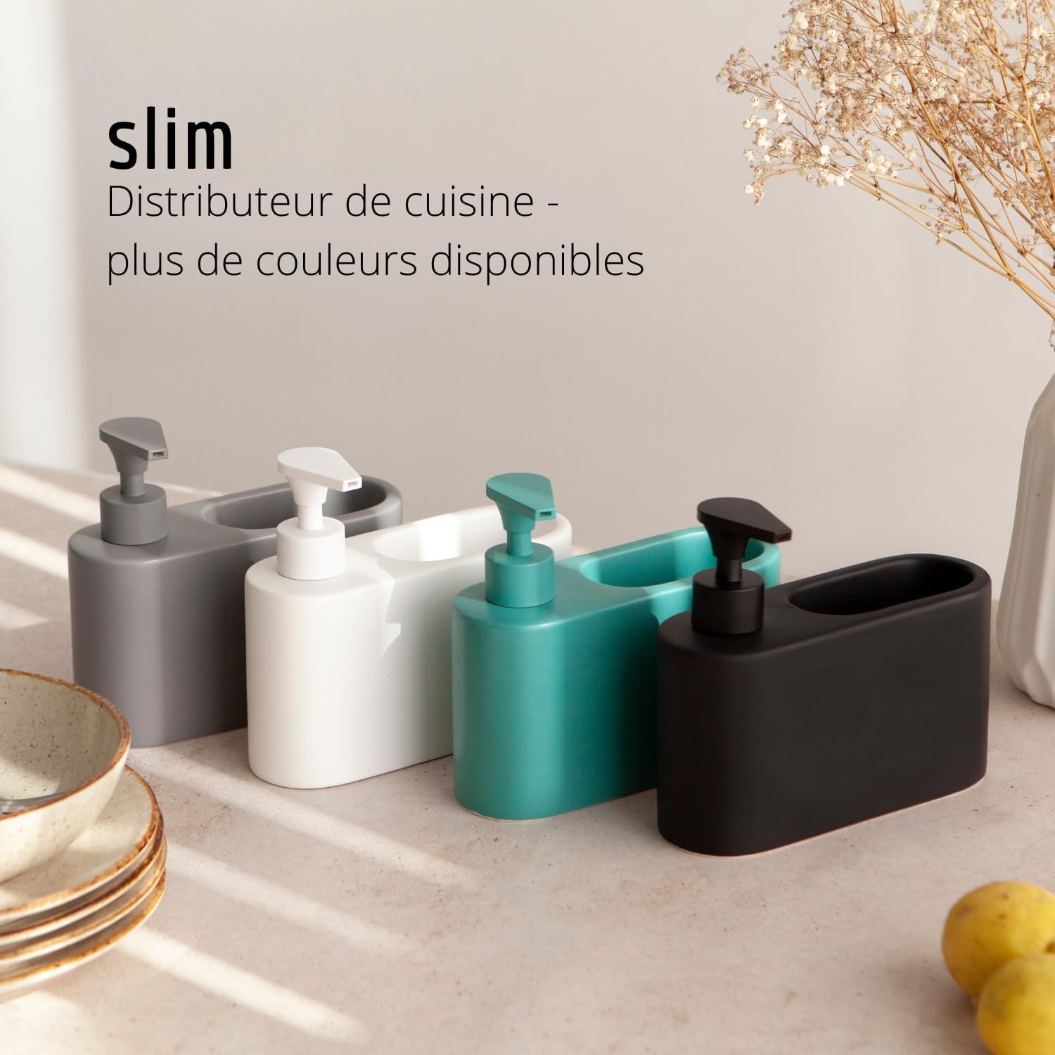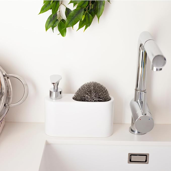 Adapté aussi bien pour la cuisine que pour la salle de bain ou la buanderie, il est fabriqué en céramique avec un distributeur en plastique ABS résistant à la rouille.