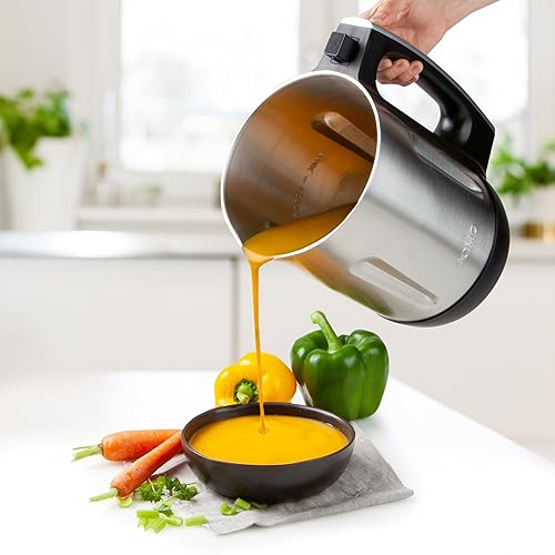 Il permet de préparer des soupes en environ 20 minutes et du lait végétal en environ 30 minutes. Équipé d'une lame XL et d’un écran LED digital avec minuteur et signal sonore de fin, il intègre un moteur avec boîtier et verseuse en acier inoxydable pour une durabilité accrue.