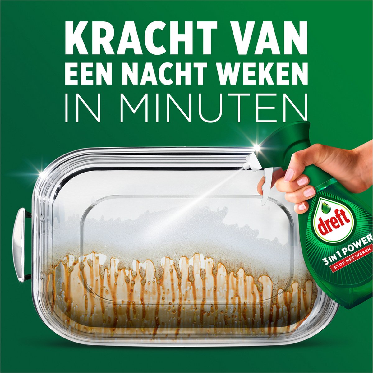 ABANDONNEZ LE TREMPAGE grâce au nouveau Spray Power 3 en 1 Dreft « Stop Soaking »... une solution rapide et efficace pour prétraiter votre vaisselle, assurant un nettoyage parfait sans effort supplémentaire.