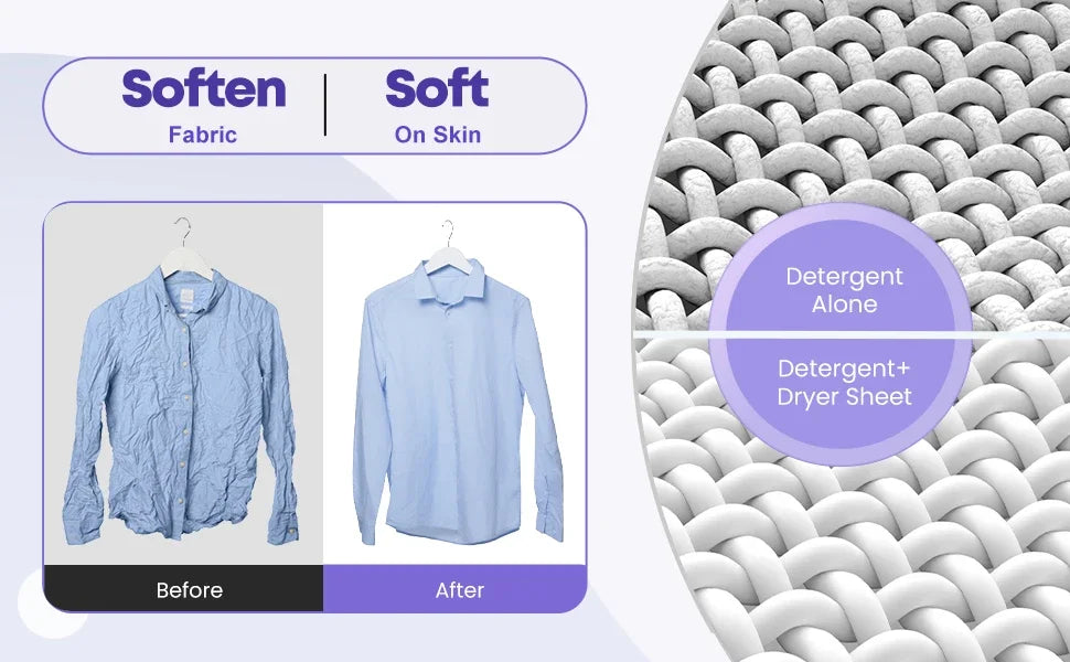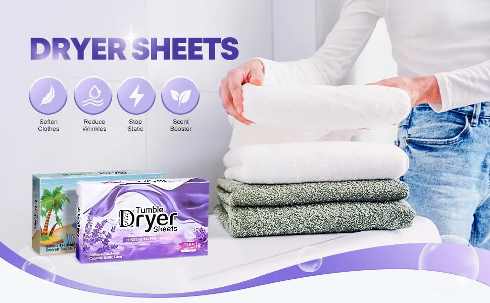 Parfum de lavande : Chaque papier doux contient de l'huile essentielle de lavande naturelle, qui libère un parfum longue durée pendant le séchage, laissant vos vêtements frais et naturels, comme dans un champ de lavande.