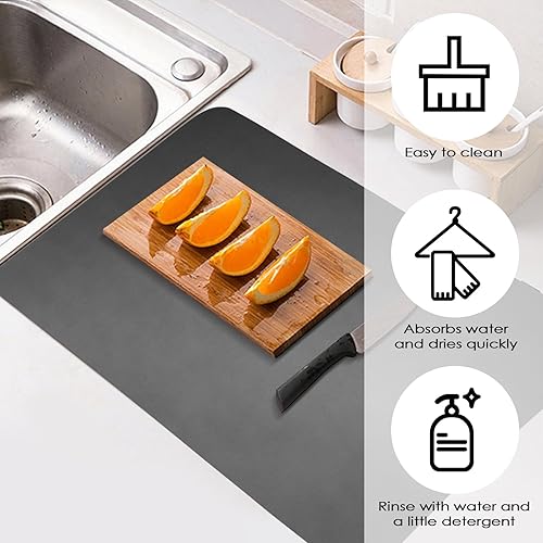 Le tapis d'égouttoir absorbant Dunkwckore, dimensions 60 x 40 cm, est idéal pour machine à café, cuisine, ou sous l’évier. Ce tapis antidérapant gris foncé assure une absorption efficace tout en protégeant vos surfaces, offrant stabilité et propreté au quotidien.