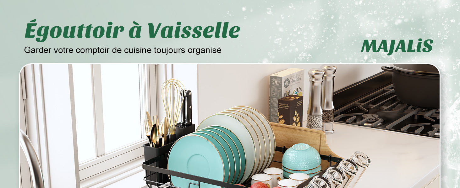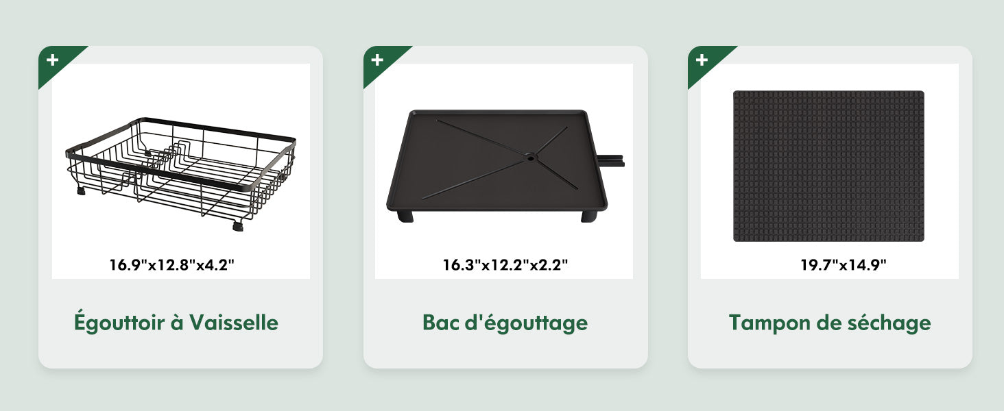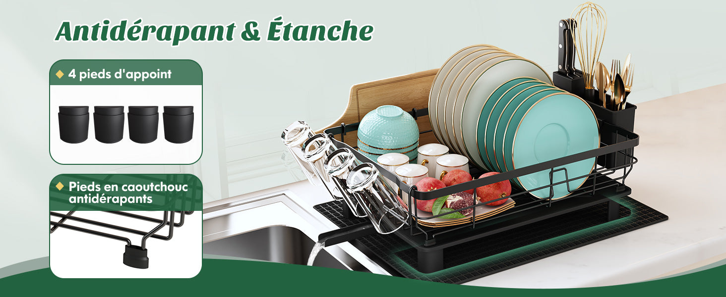 Égouttoir à vaisselle en acier inoxydable avec porte-gobelets