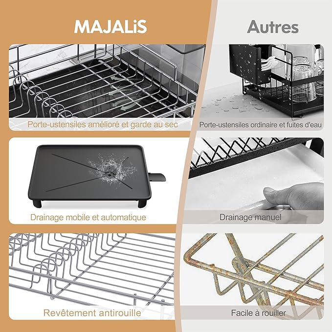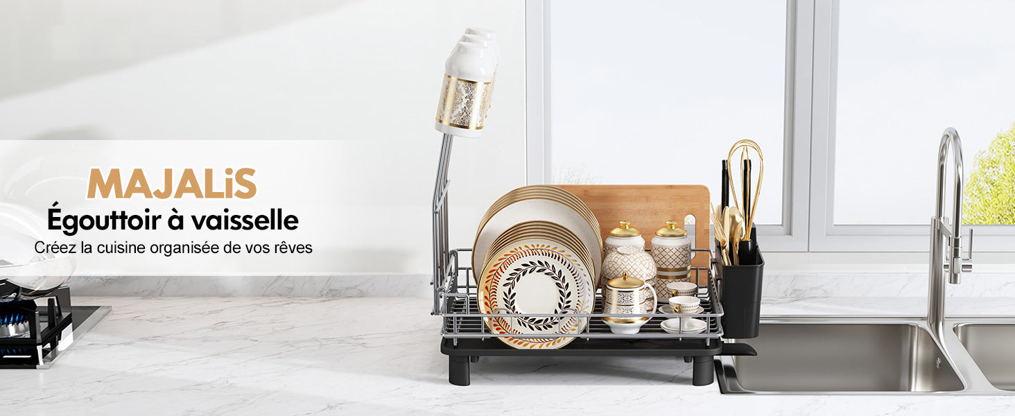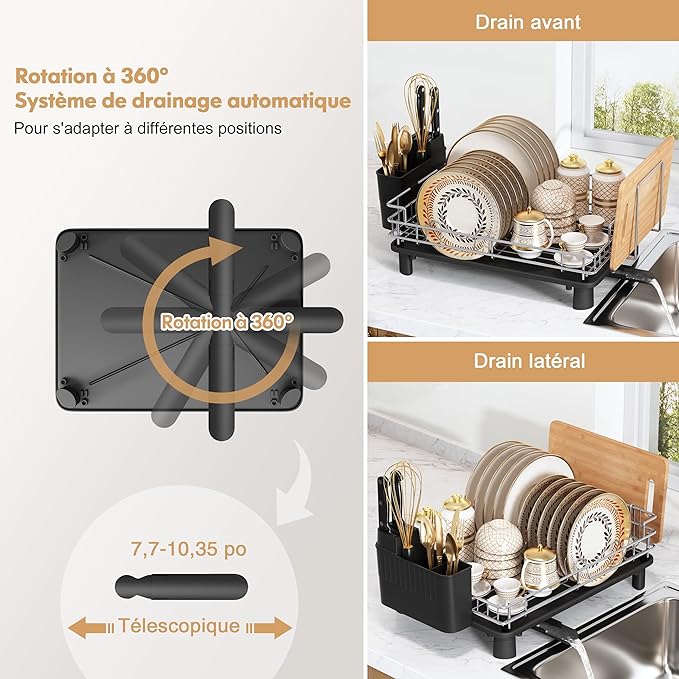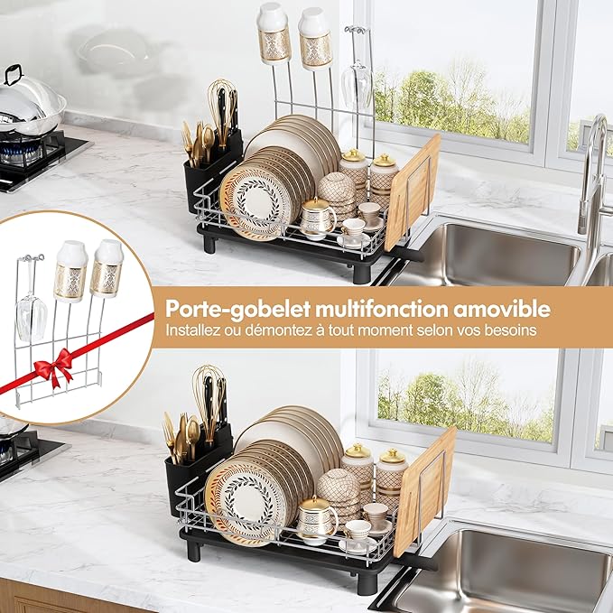 Égouttoir de cuisine en acier inoxydable avec porte-gobelet amovible unique, conçu pour sécher vaisselle, bols et autres ustensiles, idéal pour...