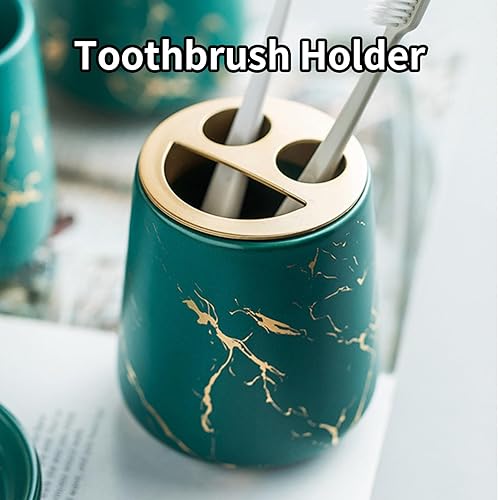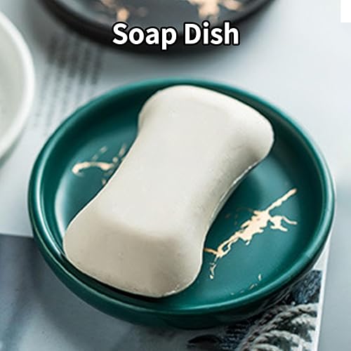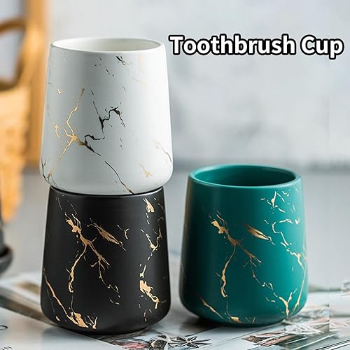 Cet ensemble de 4 accessoires de salle de bain en céramique marbrée se distingue par sa matière épaisse et résistante, offrant stabilité et élégance. Sa surface ne laisse aucune trace sur le comptoir et se nettoie aisément.