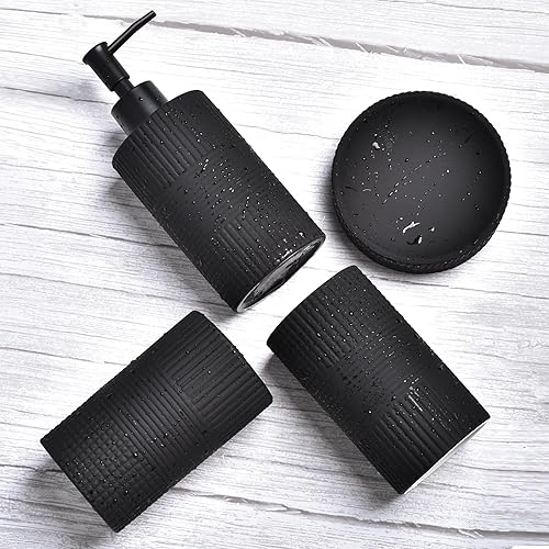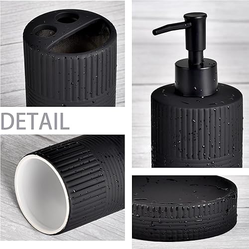 Apportez une touche contemporaine à votre salle de bain avec cet ensemble en céramique noire mate, orné de trois motifs gaufrés distincts.