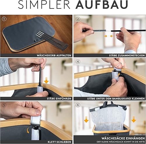 3 bacs à linge lavables : le panier Falkenwerk dispose de 3 bacs à linge avec 3 sacs à linge lavables. Pour une séparation parfaite du linge coloré, normal et de cuisine. En outre, votre panier à linge reste hygiénique et parfumé.