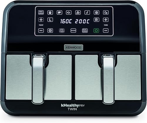 La friteuse à air double Kenwood kHealthy allie performance et praticité grâce à son système innovant à double chambre offrant une capacité totale de 8 litres, soit deux paniers de 4 litres chacun.