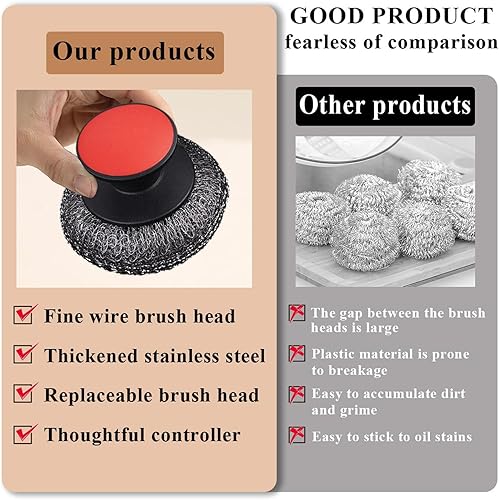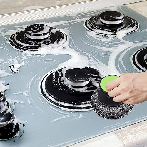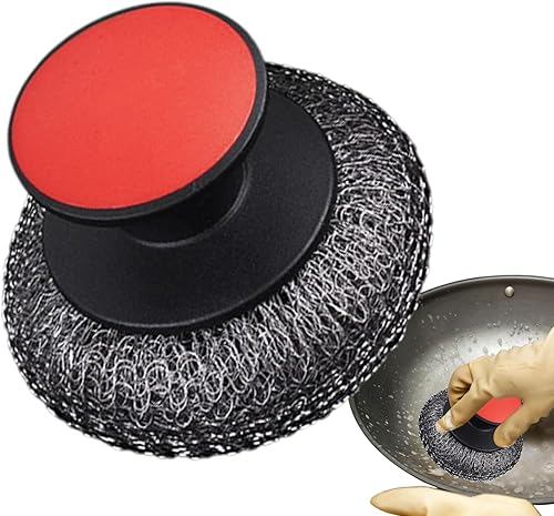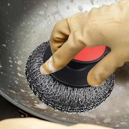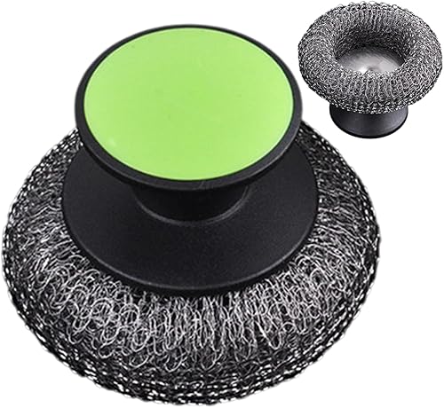 GkgWuxf Brosse À Vaisselle, brosse en acier inoxydable avec poignée ergonomique, équipée d’une éponge abrasive antidérapante conçue pour nettoyer efficacement éviers, surfaces ménagères et poêles.