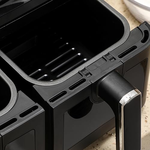 Sa température réglable de 80 à 200 ℃ et sa minuterie jusqu’à 60 minutes garantissent un contrôle précis. De plus, ses deux paniers fonctionnent indépendamment, offrant une grande flexibilité pour cuire différents plats simultanément..