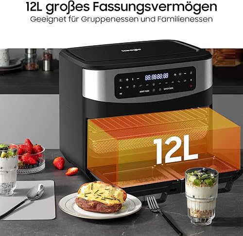 Outre sa capacité de 12 litres, idéale pour les repas familiaux ou les grandes occasions, elle permet de cuisiner avec jusqu’à 85 % d’huile en moins, préservant saveurs et textures croustillantes.