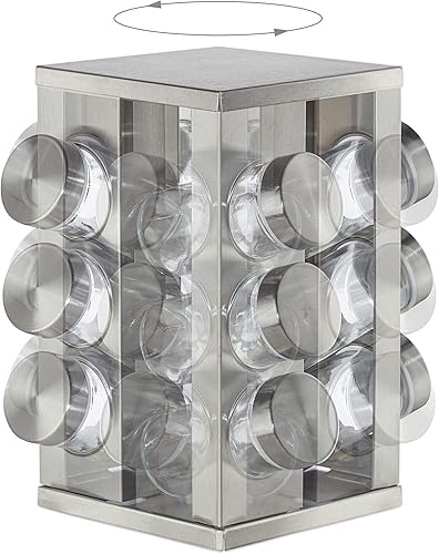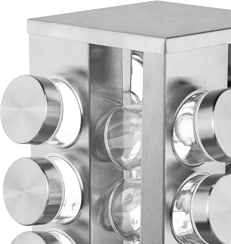 Organisez parfaitement votre espace cuisine avec ce tourniquet à épices moderne en acier inoxydable argenté.