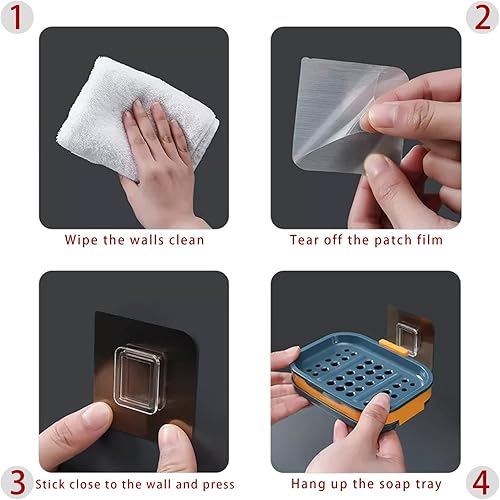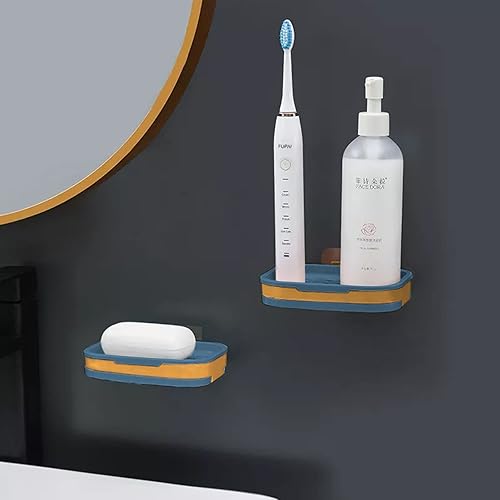 Intirilife Porte-Savon, dimensions 13 x 9 x 2 cm, finition Bleu Sombre – support mural adhésif avec réservoir d’eau intégré, installation sans perçage.
