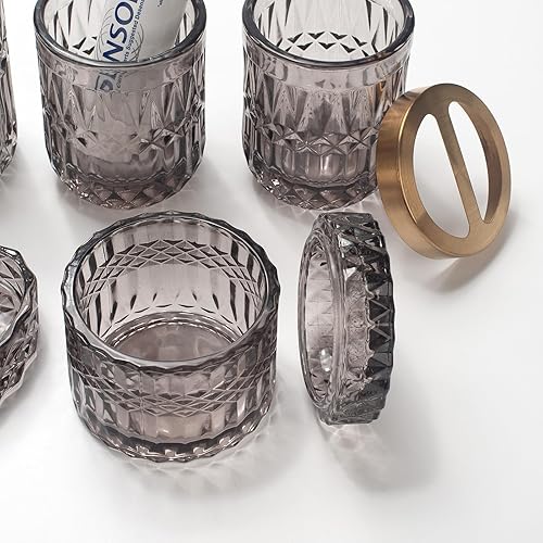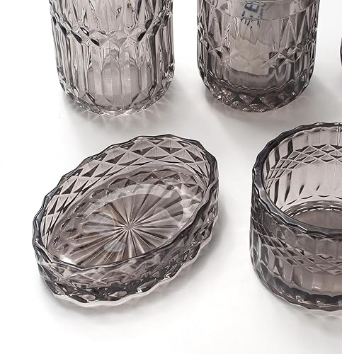 Cet ensemble de 5 accessoires de salle de bain IVAILEX en verre gris offre un design vintage et raffiné avec une finition diamantée qui garantit une prise en main agréable et antidérapante.