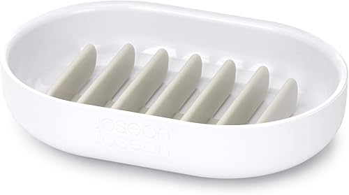 Le porte-savon Joseph Joseph Duo assure un égouttage efficace grâce à son support de séchage amovible, alliant praticité et design épuré en blanc.