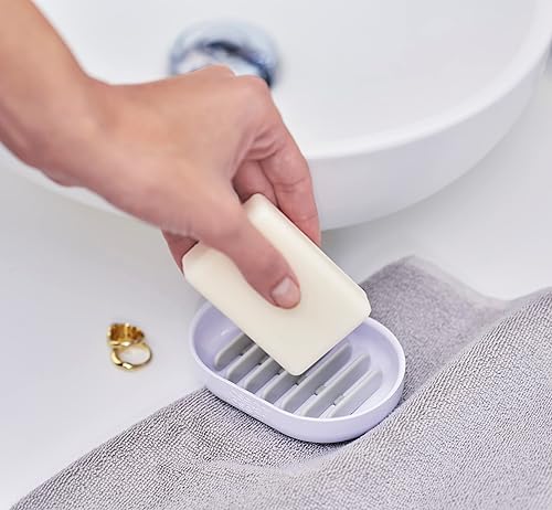 Ce porte-savon innovant intègre un égouttoir qui relève le savon au-dessus de la base, permettant à l'eau et à la mousse de s'évacuer facilement, ce qui limite la dissolution excessive du savon.