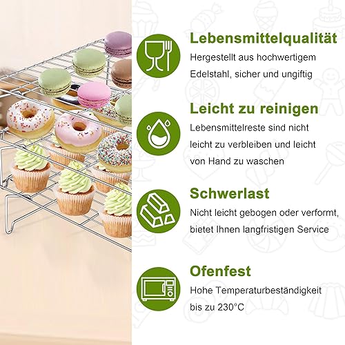 Lot de 3 grilles de refroidissement Joyfair en acier inoxydable de qualité alimentaire, garantissant une cuisson saine sans substances chimiques nocives.