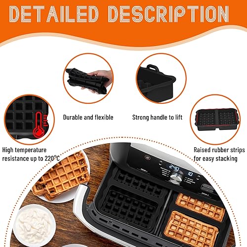 SilverChry kit de 2 moules à gaufres en silicone, spécialement conçus pour friteuse à air Ninja. Accessoires pratiques en silicone résistant pour plaques à gaufres, compatibles avec les modèles Ninja Air Fryer.