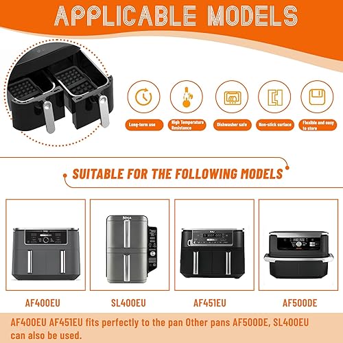 Compatible avec plusieurs modèles populaires de friteuses à air comme Ninja AF300EU, AF400EU, AF451EU, SL400EU, et AF500DE, il assure un ajustement précis et une stabilité optimale lors de la cuisson.