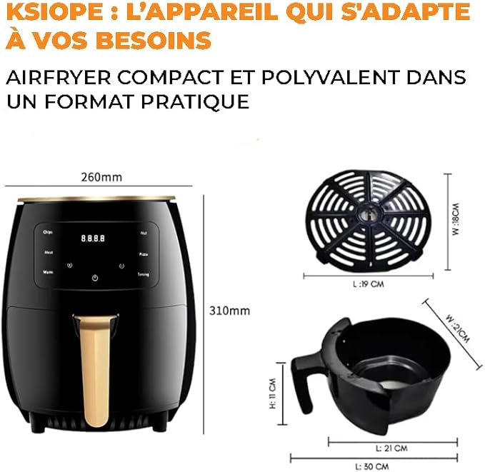 Friteuse à Air Ksiope 4,5L nouvelle génération : puissance de 1400W, écran tactile, 8 programmes intégrés pour une cuisson sans...