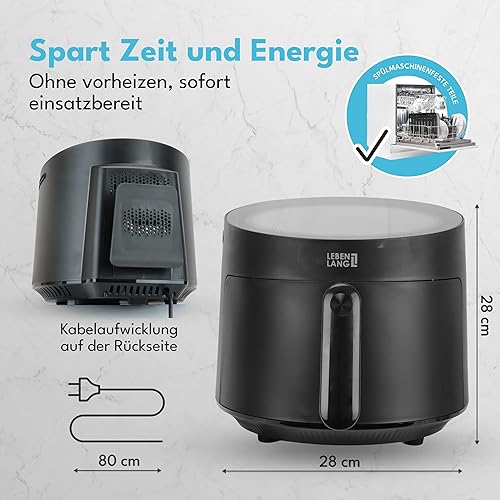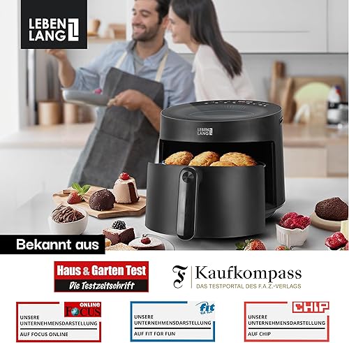 Découvrez la friteuse à air chaud LEBENLANG de 5 litres avec un livre électronique de recettes innovantes.